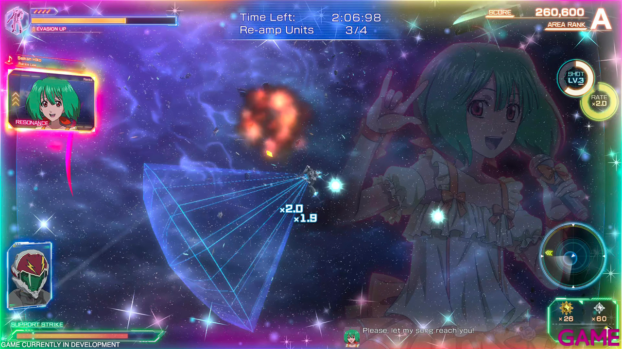 Sincronízate con las cantantes mientras juegas en los escenarios para activar una variedad de ventajas y desventajas, como mayor potencia de fuego, mayor maniobrabilidad, menor velocidad de fuego del enemigo, etc.