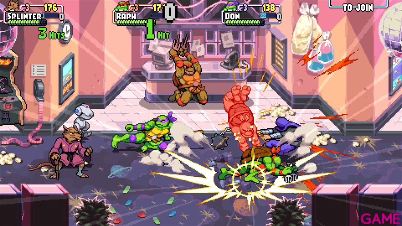 Elige un luchador, usa combos radicales para derrotar a tus rivales y experimenta intensos combates cargados de acción trepidante y extravagantes habilidades ninja. Mantente alerta en tu enfrentamiento en solitario con Shredder y su fiel Clan del Pie, ¡o únete a tus mejores amigos para jugar con hasta cuatro jugadores a la vez!