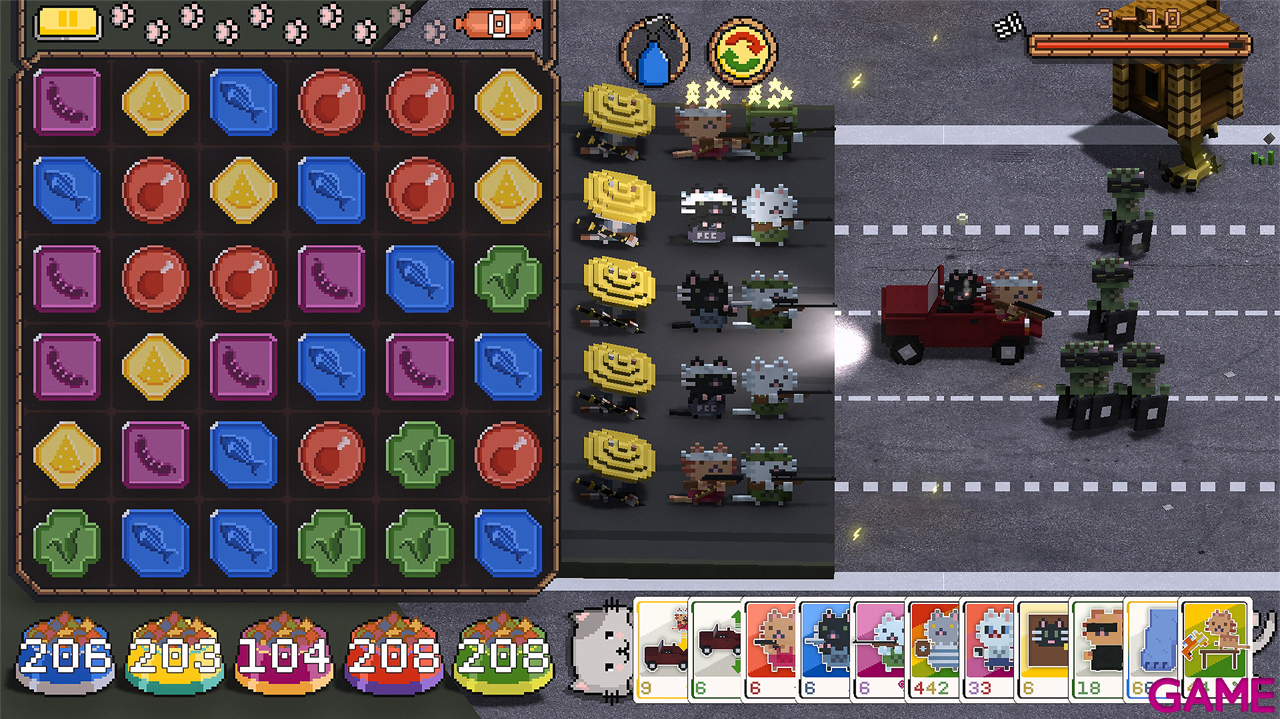 Cats on Duty se ha inspirado en juegos como Plants vs. Zombies o Tower Swap para sacar lo mejor del género y le añade un giro adicional con una impresionante mecánica de combinar 3.