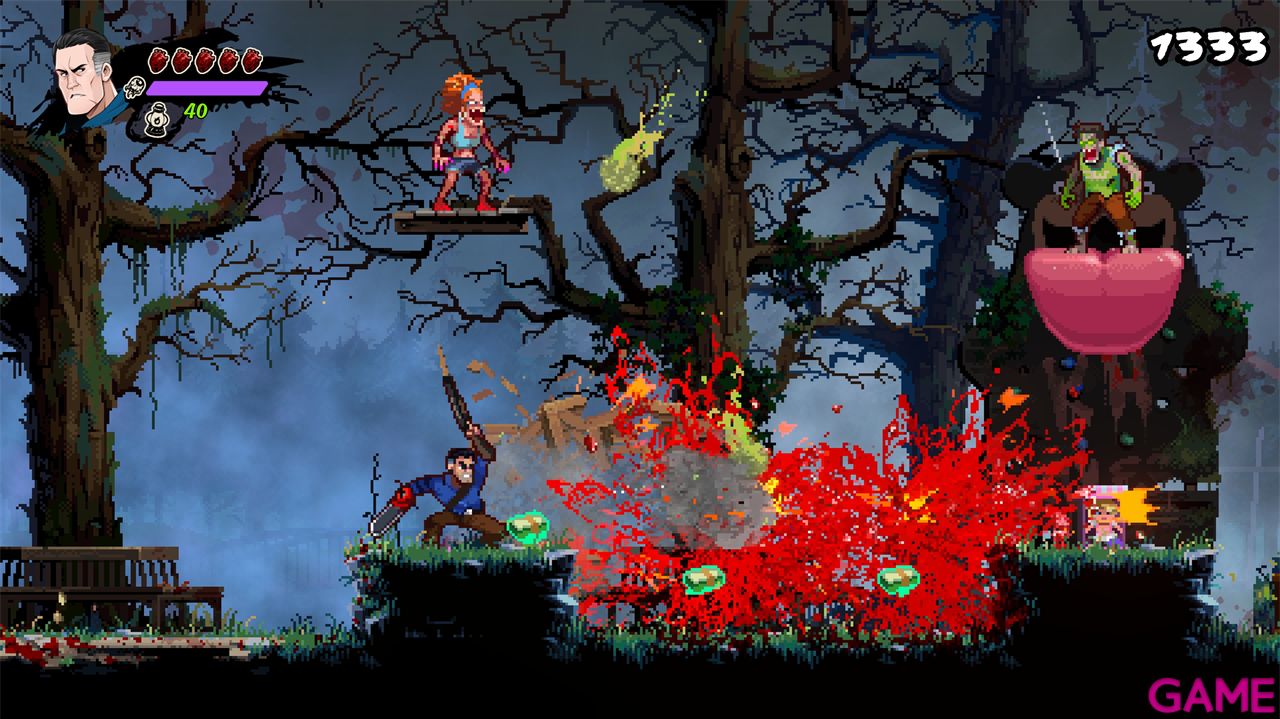 Zambúllete en un universo pixel art de 16 bits rebosante de sangrienta diversión encarnando a las leyendas del terror Michael Myers y Ash Williams. Ábrete paso a sangre y fuego por múltiples niveles de aterradora acción de plataformas, llenos de conocidos sonidos e imágenes tanto de la película original “La noche de Halloween” como de la serie de televisión “Ash vs Evil Dead” de STARZ.