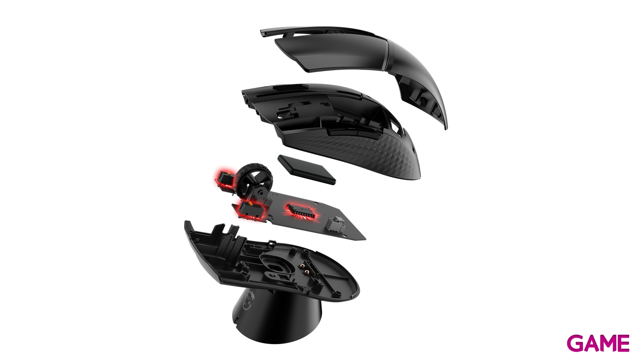 Un gran ratón si buscas relación calidad-precio. Funciona muy bien, es preciso y de gran tamaño. Buen sensor, botones Omron, es ligero (74g) y su base permite cargarlo en poco tiempo además de dejar libre un puerto USB, ya que el pincho lo insertas en la propia base. También puedes quitar la base, ya que funciona sólo con el pincho o conectando el cable directamente al ratón.