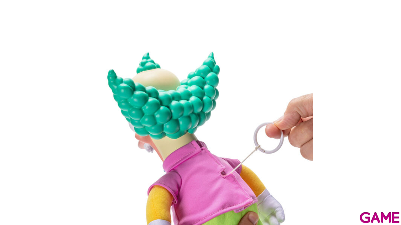 Con un tamaño de 44 cm, este juguete captura perfectamente la apariencia del peluche de Krusty el Payaso en su versión malvada: Con dientes afilados, el mecanismo de cuerda para hacerlo bueno o malo, ¡e incluso la caja es igual a la que aparece en el episodio!
